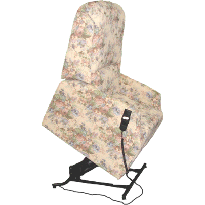 An electrically operated recliner lift chair designed to raise a seated occupant to a full standing position, or smoothly lower a standing person to a normal sitting or full reclining position. The chair is controlled by a simple 2 button handset positioned on the left or right as required.