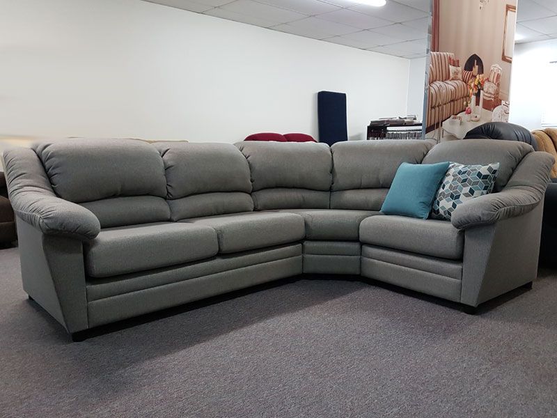 The smooth flowing lines of the curved corner back, and the fully padded outside back and outside arms give this suite the flexibility to be used as a room divider